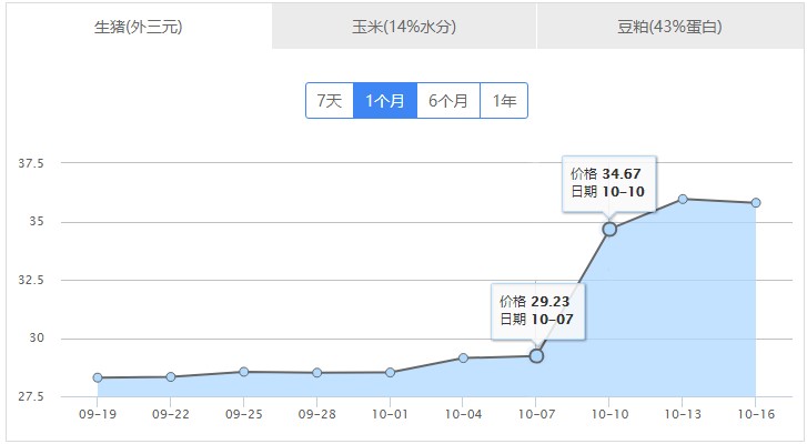 國慶節(jié)剛過,豬肉價格立馬反彈,最近幾天的漲速猶如坐火箭。數(shù)據(jù)顯示,有部分地區(qū)的豬價已經(jīng)沖上20元/斤。東北地區(qū)、華南地區(qū)等地一周內(nèi)的累計漲幅超過2元/斤。當(dāng)前豬價已經(jīng)漲到了歷史高位,相比2016年的最高價已高出接近10元/斤。